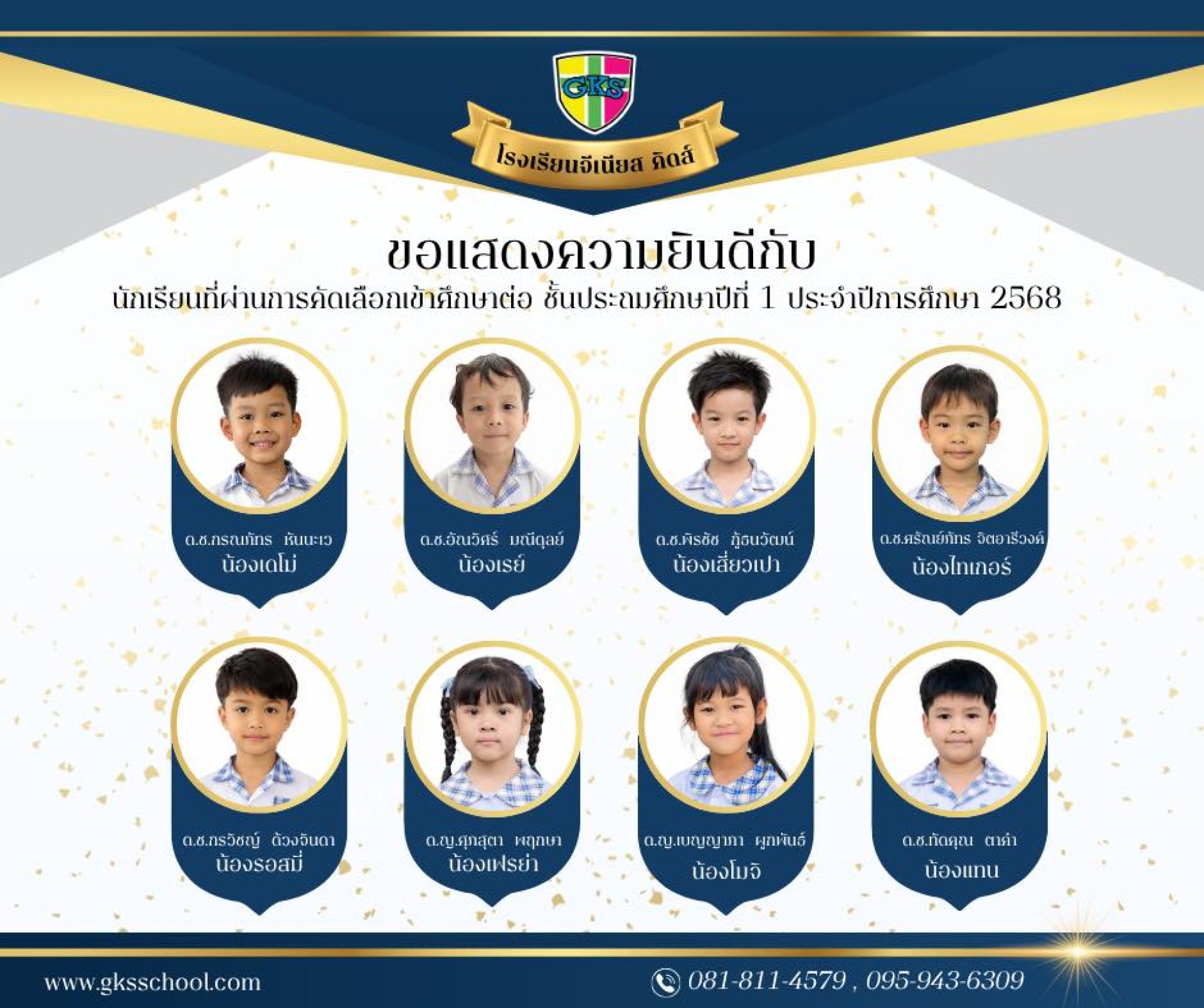 นักเรียนคนเก่งของเรา สามารถสอบเข้าศึกษาต่อในระดับชั้นประถมศึกษาปีที่ 1 ได้สำเร็จอย่างงดงาม