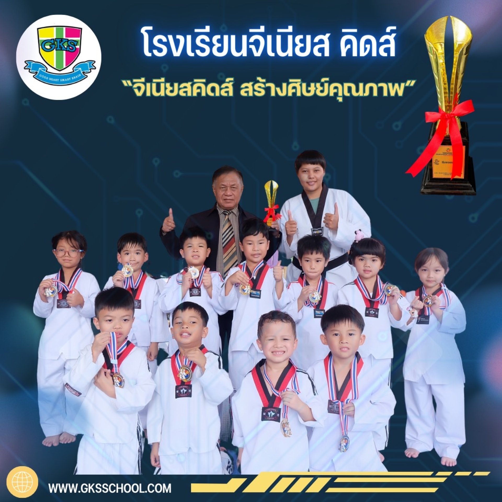 ผลจากการเรียนและฝึกซ้อมกันมาโดยตลอดทำให้คะแนนรวมสะสมทีมโรงเรียนจีเนียส คิดส์ ได้รับถ้วย พัฒนาทีมยอดเยี่ยม และขอแสดงความยินดีกับนักกีฬาทุกคนที่เก่งกันมากๆเลยนะคะ